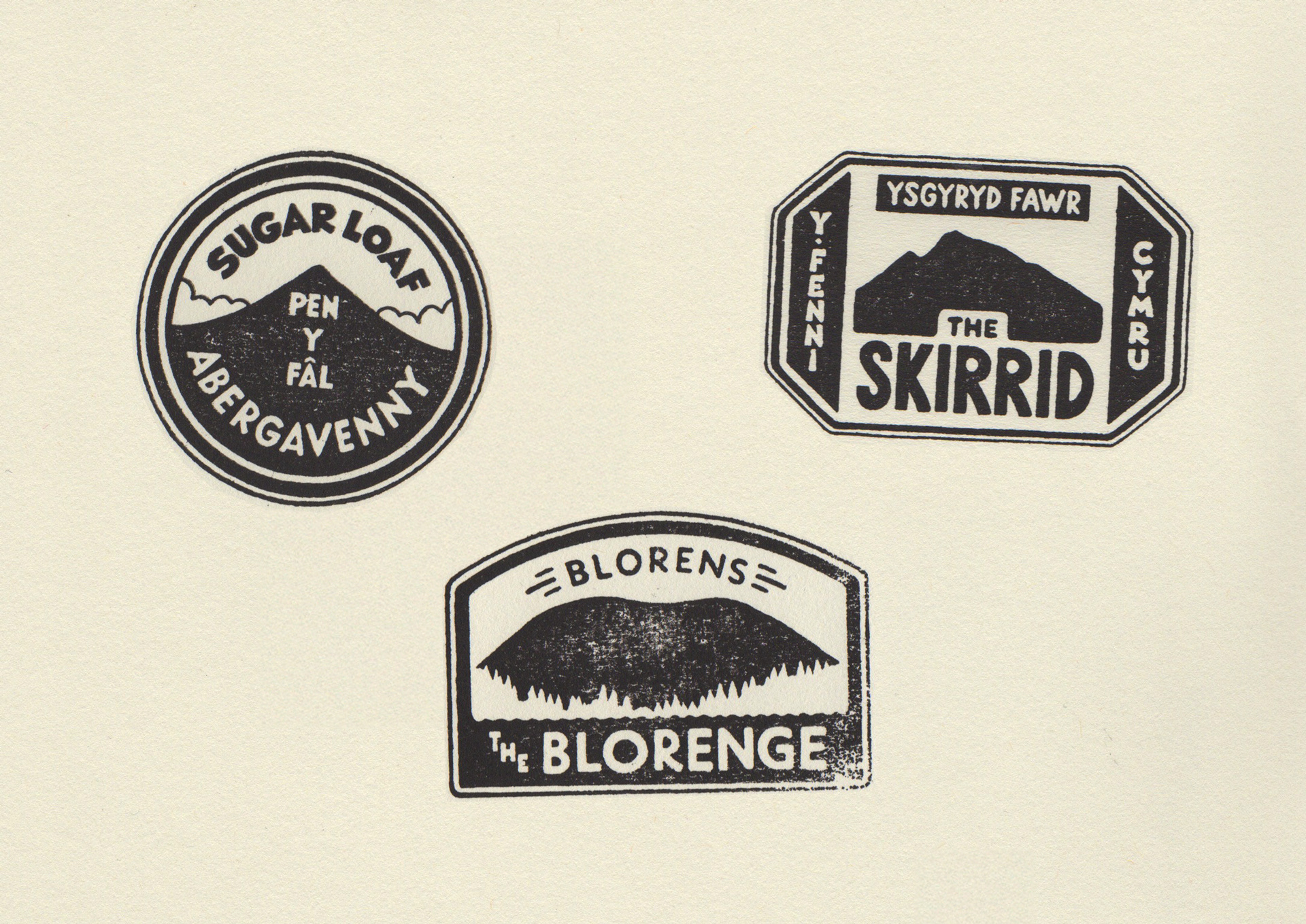 Stamp designs for 3 of my local hills in the Bannau Brycheiniog